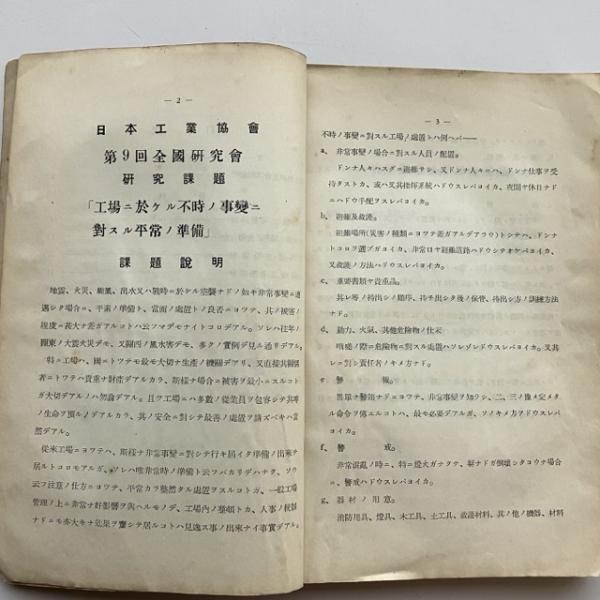 第9回研究会資料 工場二於ケル不時ノ事変に對スル平常の準備(日本工業協会・大阪・昭和11年)