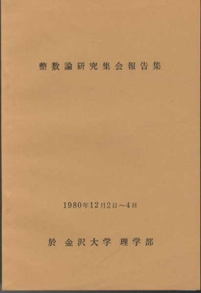 整数論研究集会報告集 1980年12月2日~4日 於金沢大学 理学部