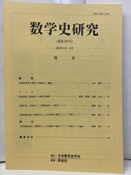 数学史研究 通巻189号 <数学史研究2006年 4月~ 6月>