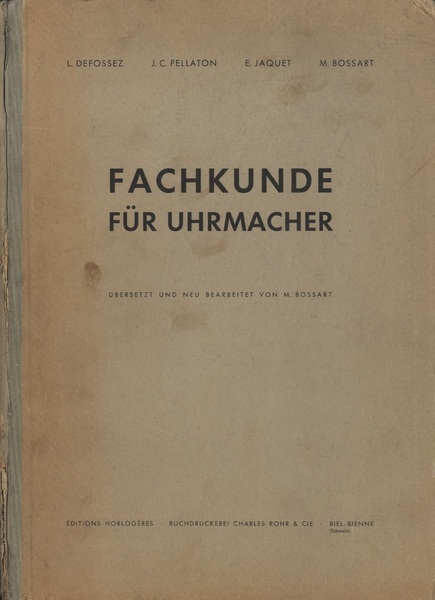 Fachkunde fur Uhrmacher Ubersetzt und fur die deutsche Ausgabe neu bearbeitet und erganzt von M. Bossart
