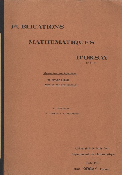 Resolution des equations de Navier Stokes dans le cas stationnaire <Pubulications Mathematiques d’ Osay 81-07>