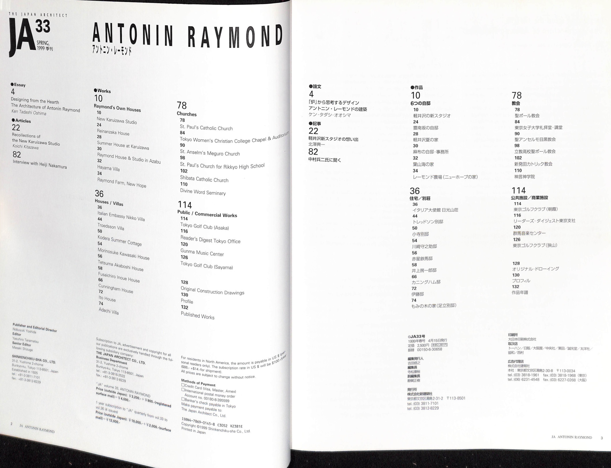 JA : The Japan architect 33号 1999年 SPRING アントニン・レーモンド