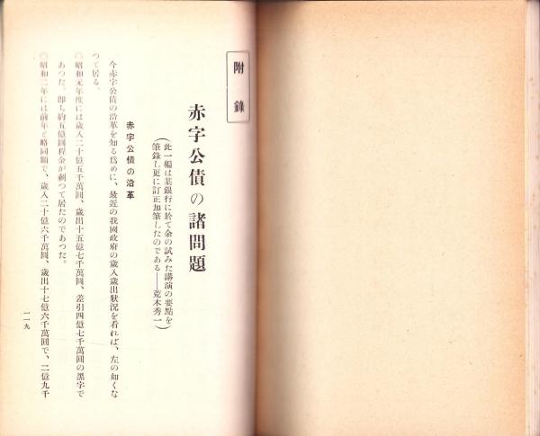 各種産業の現状と前途の展望 -附録 赤字公債の諸問題- 財政経済叢書 第3編
