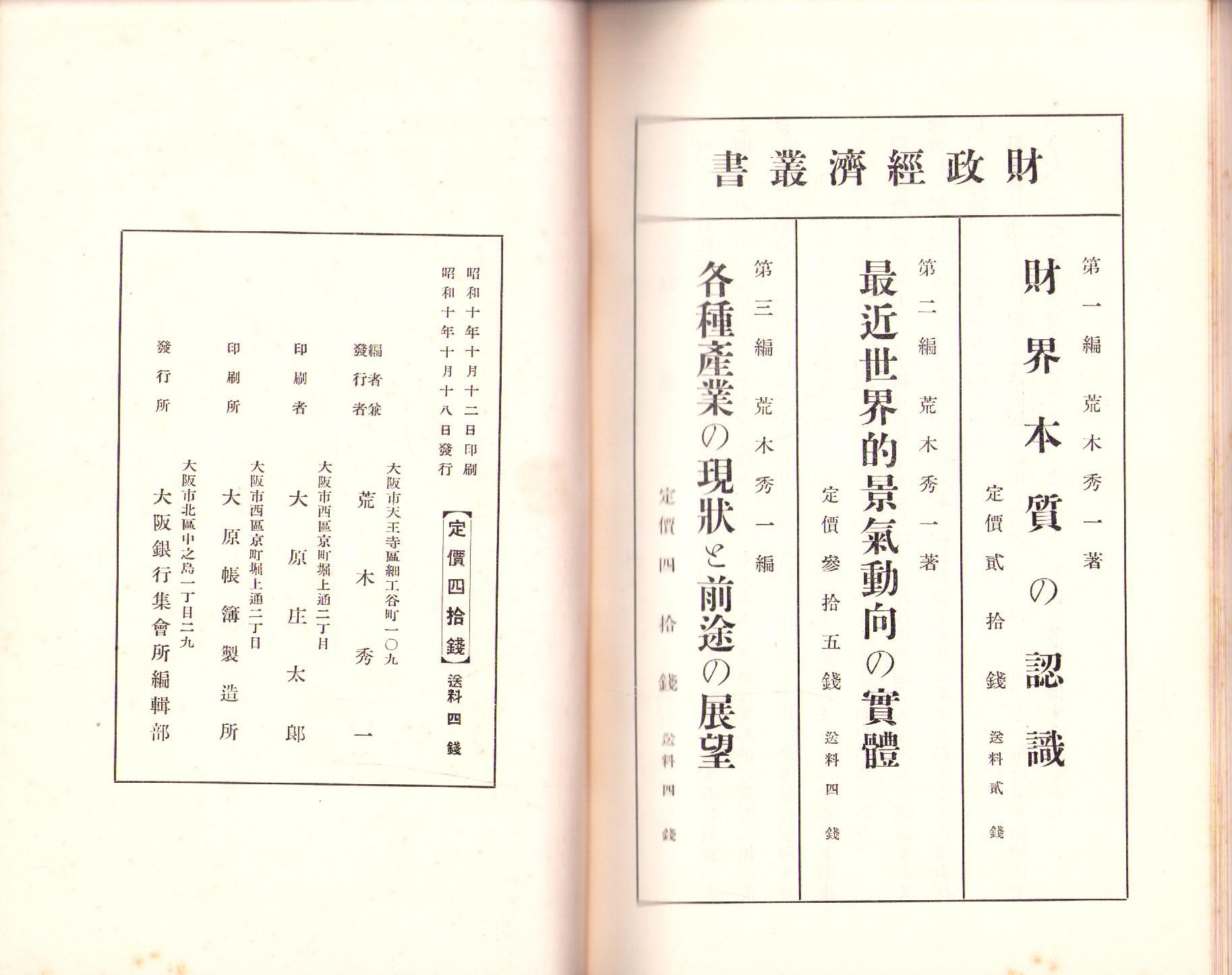 • 出版社 大阪銀行集会所編輯部(大阪市)