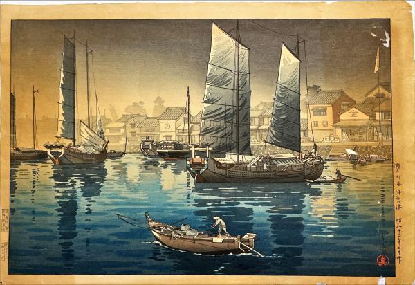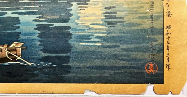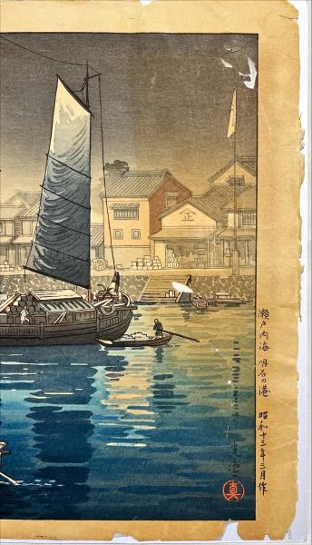 土屋光逸木版画 【瀬戸内海 明石の港】