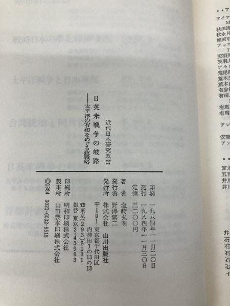 日英米戦争の岐路: 太平洋の宥和をめぐる政戦略 (近代日本研究双書) 山川出版社 塩崎 弘明