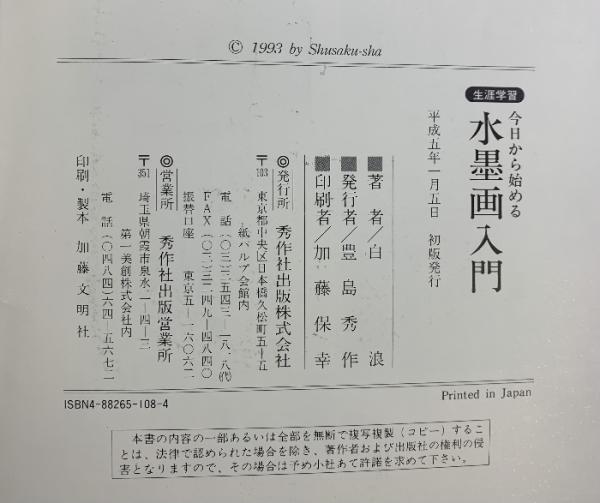 水墨画入門: 今日から始める 生涯学習 秀作社出版 白浪