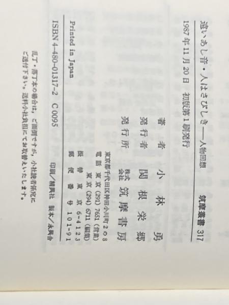 ※イタミ有 遠いあし音,人はさびしき: 人物回想 (筑摩叢書 317) 筑摩書房 小林 勇