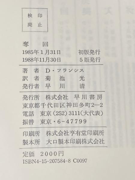 奪回 (ハヤカワ・ノヴェルズ) 早川書房 ディック フランシス