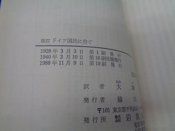 ドイツ國民に告ぐ <岩波文庫> 改訂版