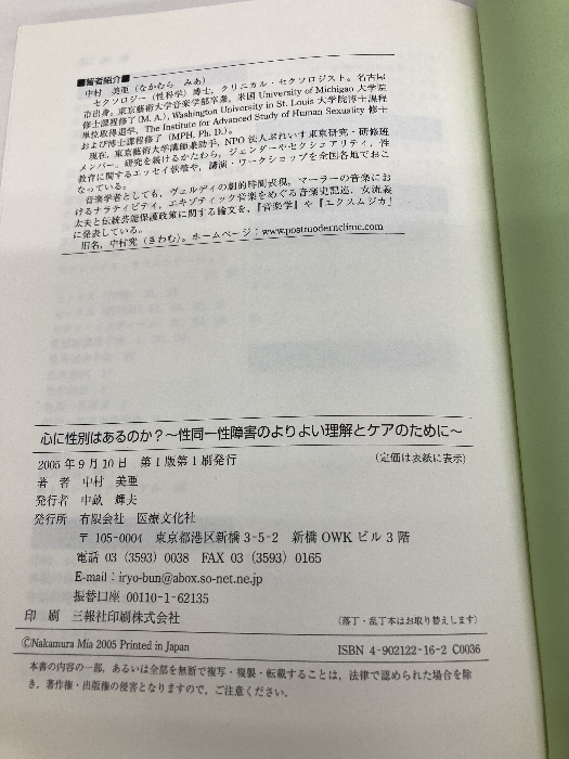心に性別はあるのか?―性同一性障害のよりよい理解とケアのために 医療文化社 中村 美亜