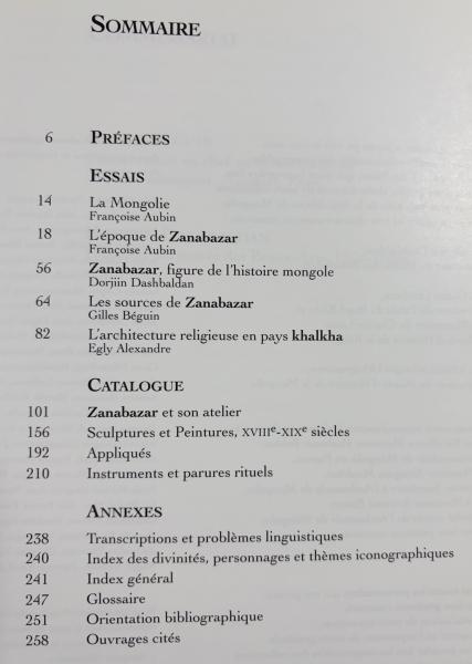 17世紀から19世紀のモンゴル仏教美術を中心に、ザナバザル作の彫像をはじめ、彫刻・絵画・タンカ・儀礼具などを収録。