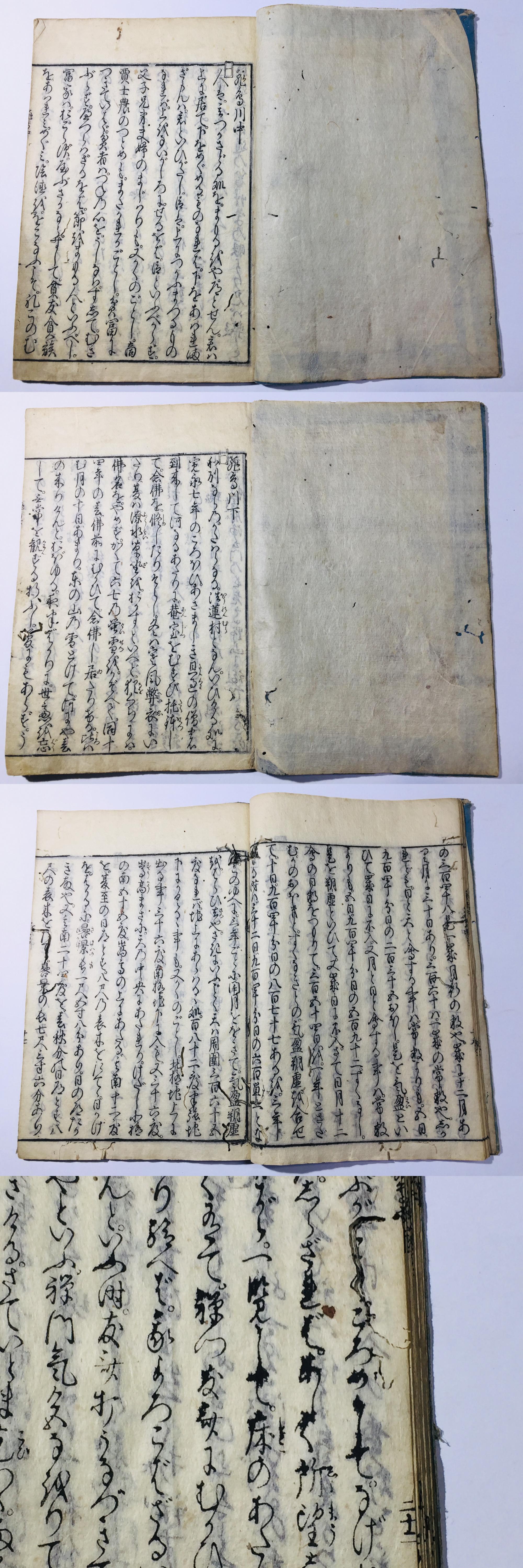 ・綴じ糸が一部のみ切れている和本は読むのに影響が大きいかどうかをこちらで判断し綴じ直しまたはそのままの状態で発送いたします。
