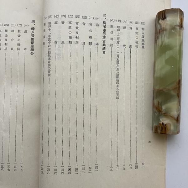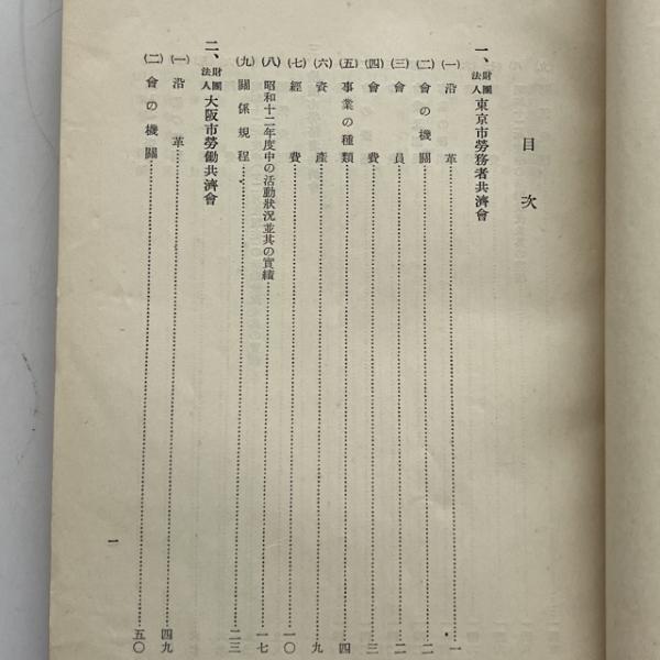現下我国に於ける日傭労働者共済施設概況(昭和13年6月・厚生省職業部)詳細は目次画像参照