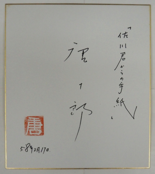 唐十郎色紙 『「佐川君からの手紙」』 Sペン書 落款入
