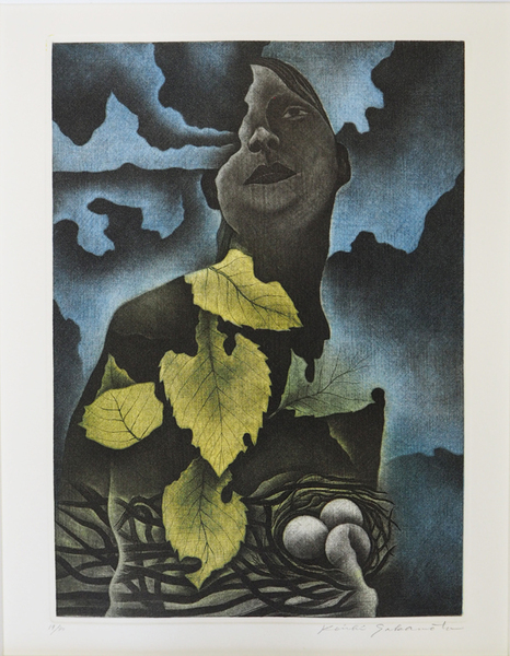 坂本好一銅版画『枯葉の頃』 サイン入 19/30 画/210×150ミリ 額/426×350ミリ