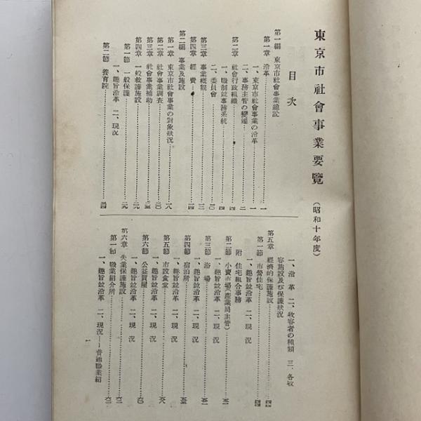 東京市社会事業要覧(昭和10年・東京市役所)詳細は目次画像参照