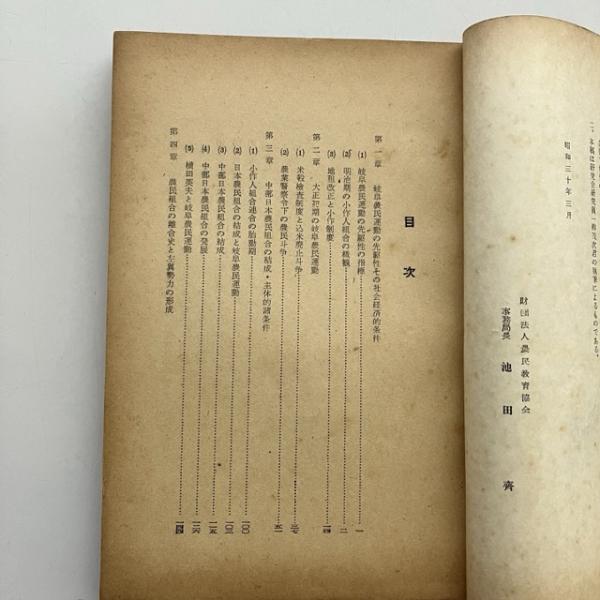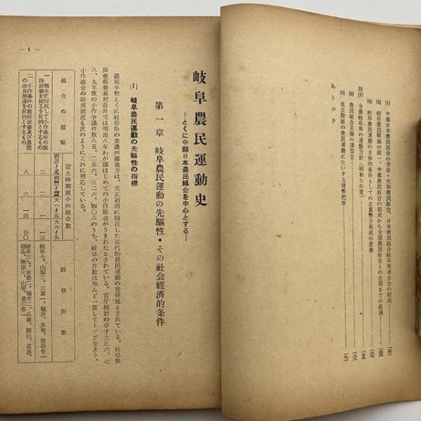 岐阜農民運動史ーとくに中部日本農民組合を中心とするー(農民教育協会・農民運動史研究会・昭和30年)詳細は目次画像参照