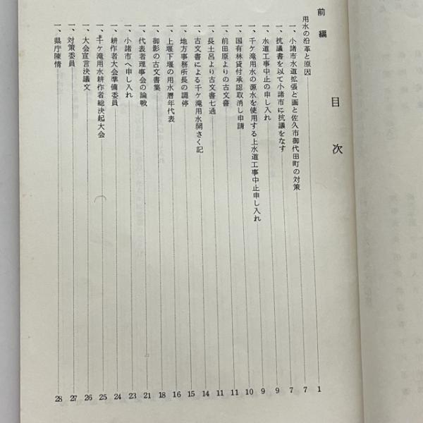 昭和の水利権紛争 千ヶ滝用水(千ヶ滝用水推理利権確保期成同盟会・昭和41年)詳細は目次画像参照