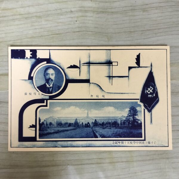 1_ 絵葉書 岩手県立盛岡中学校 50周年記念 現校舎 筧現校長 230038