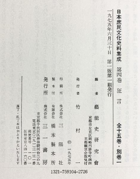 『日本庶民文化史料集成』第4巻 狂言 三一書房 編:藝能史研究會 1975年
