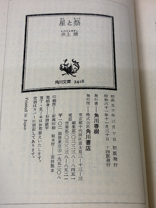 【※イタミ有り】星と祭 (角川文庫 い 5-4) KADOKAWA 井上 靖