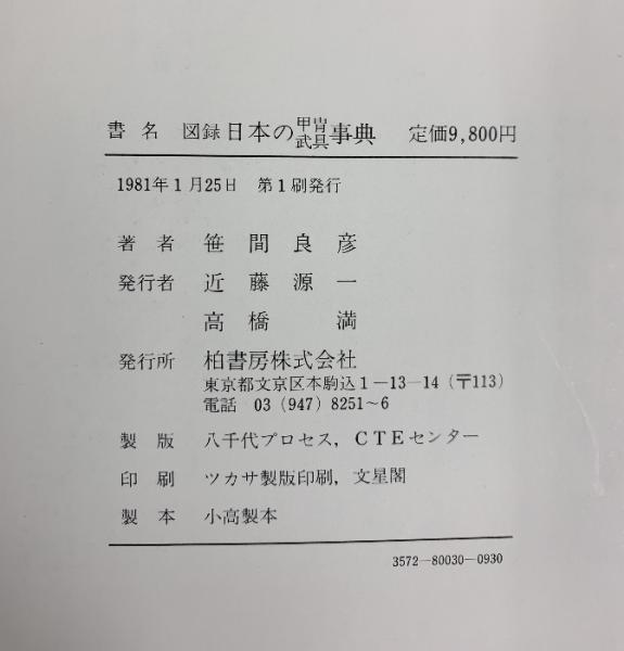 【図録】日本の甲冑武具事典 柏書房 笹間良彦:著 1981年