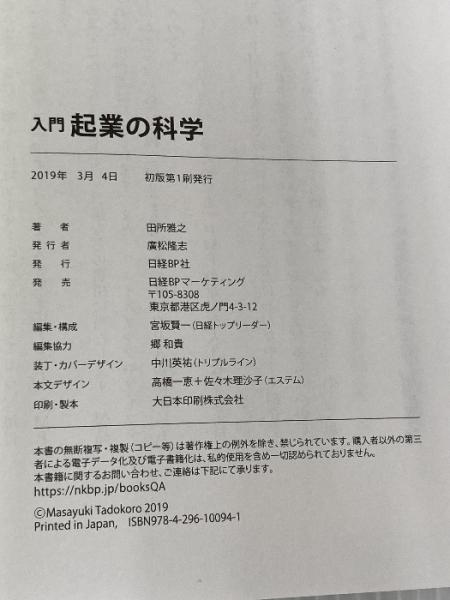 入門 起業の科学 日経BP 田所 雅之