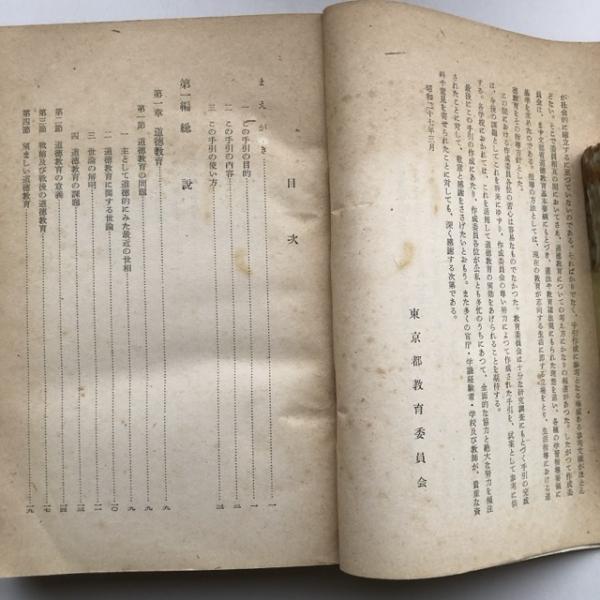 道徳教育の手引き 試案(東京都教育委員会・昭和27年)詳細は目次画像参照