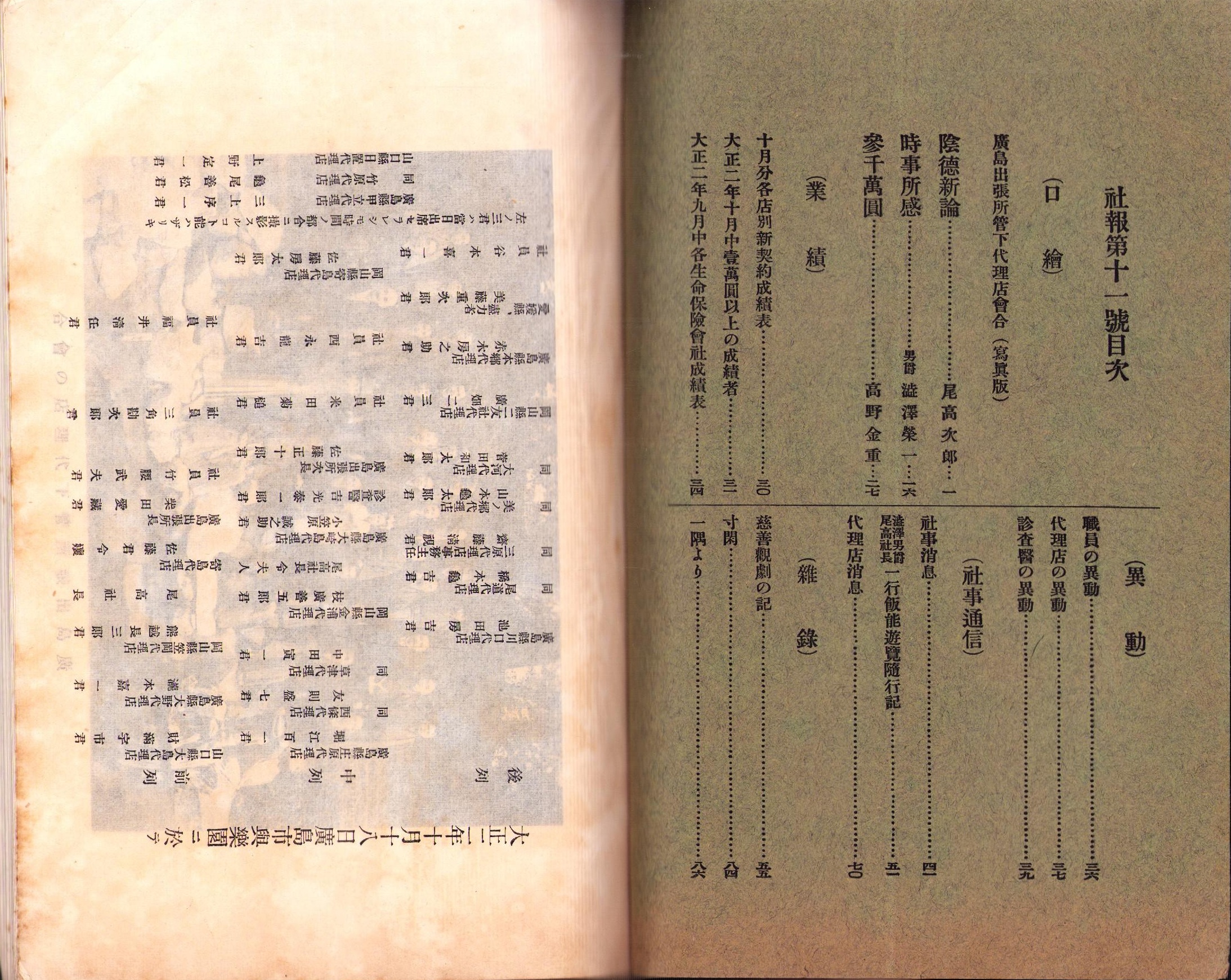 東洋生命保険株式会社 社報 第11号 -大正2年11月-