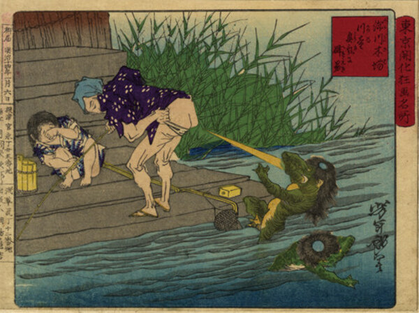 東京開化狂画名所 木場 川童臭気に辟易