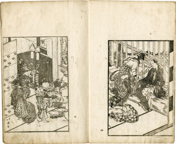• 解説 江戸の北方にある、新吉原の遊女と客の一日の様子を描く 大本26.5×17.7糎 小虫損 すれ 滑稽本
