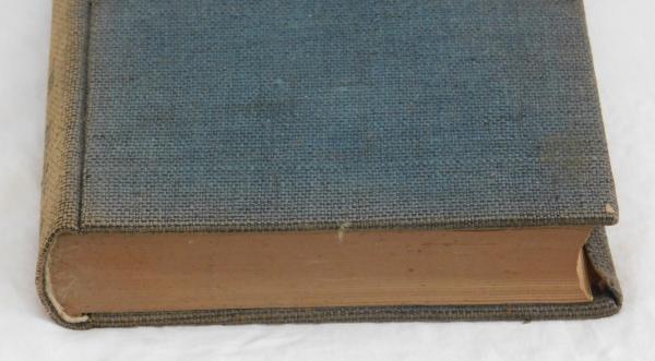 表紙背強ヤケ(画像参照)・平ヤケ擦れ少イタミ、天と地ヤケ、小口ヤケ使用感シミ汚れ(画像参照)、前見返し糊付け跡汚れ、後見返し値札剥し跡・糊付け跡・古書店値札半券・表紙布縁剥がれ・見返し遊び紙下縁余りなどがあります。