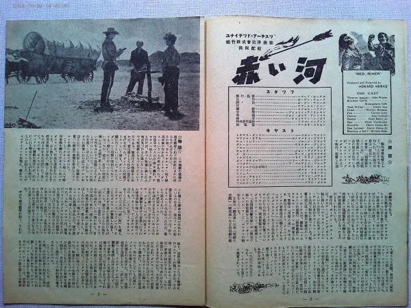 映画「赤い河」パンフレット ジョン・ウェイン モンゴメリー・クリフトジョーン・ドリュウ監督ハワード・ホークス 日本公開1952年