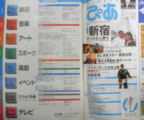 特集/大変身!新宿・行ったもん勝ち LOOK UP/かっこいい!ステキ~・ハリウッドのおじさまスター徹底比較 映画も、TVも、この秋注目!「踊る大捜査線」事件ファイル NY→東京へ・ミュージカル/「ライオンキング」日本上陸 ぴあスーパーリザーブシート/浜田省吾 ほか