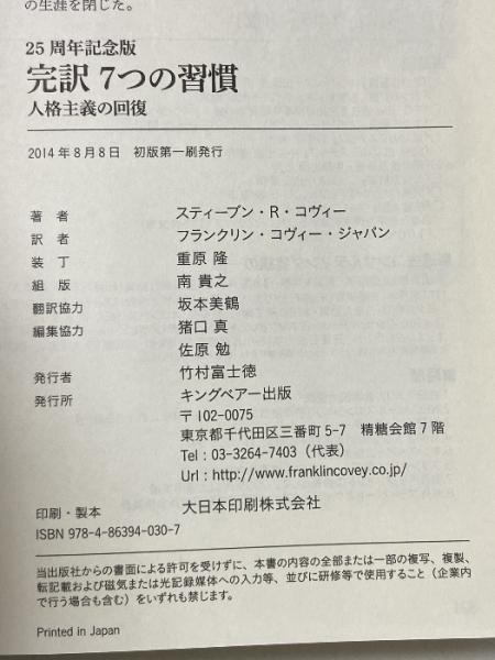 完訳7つの習慣 25周年記念版 キングベアー出版 スティーブン・R・コヴィー