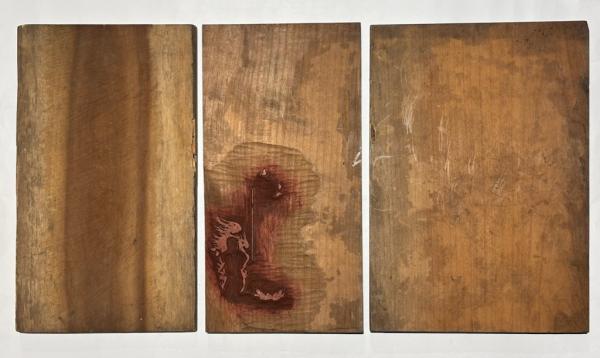 • 解説 真ん中の版木は裏に不動明王の炎の彩色のために彫られています 発送方法:ゆうパック(国内送料無料)