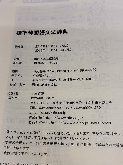 標準韓国語文法辞典 アルク 韓国・国立国語院