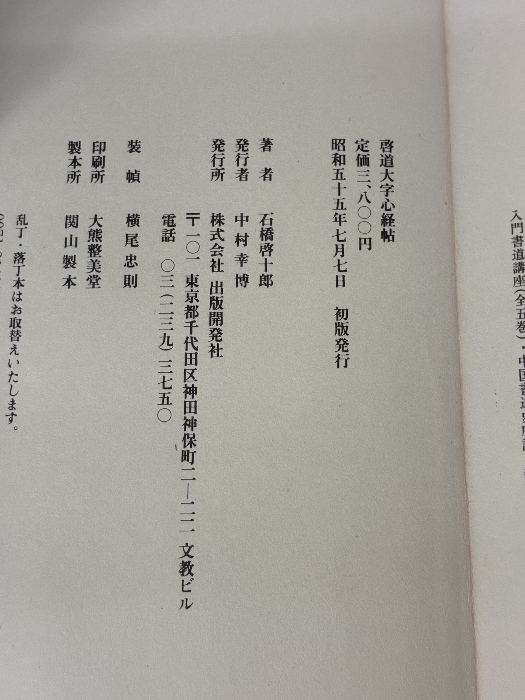 【※イタミ有り】啓道大字心経帖 (1980年) 出版開発社 石橋 啓十郎