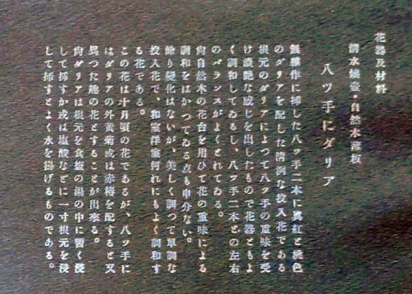 彩色石版画 ヤツデにダリア 盛花 西洋花 生花図譜 華道 生花 解説付き 昭和年代〇和本古書古文書