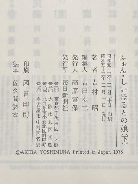 ふぉん・しいほるとの娘 下 毎日新聞出版 吉村 昭