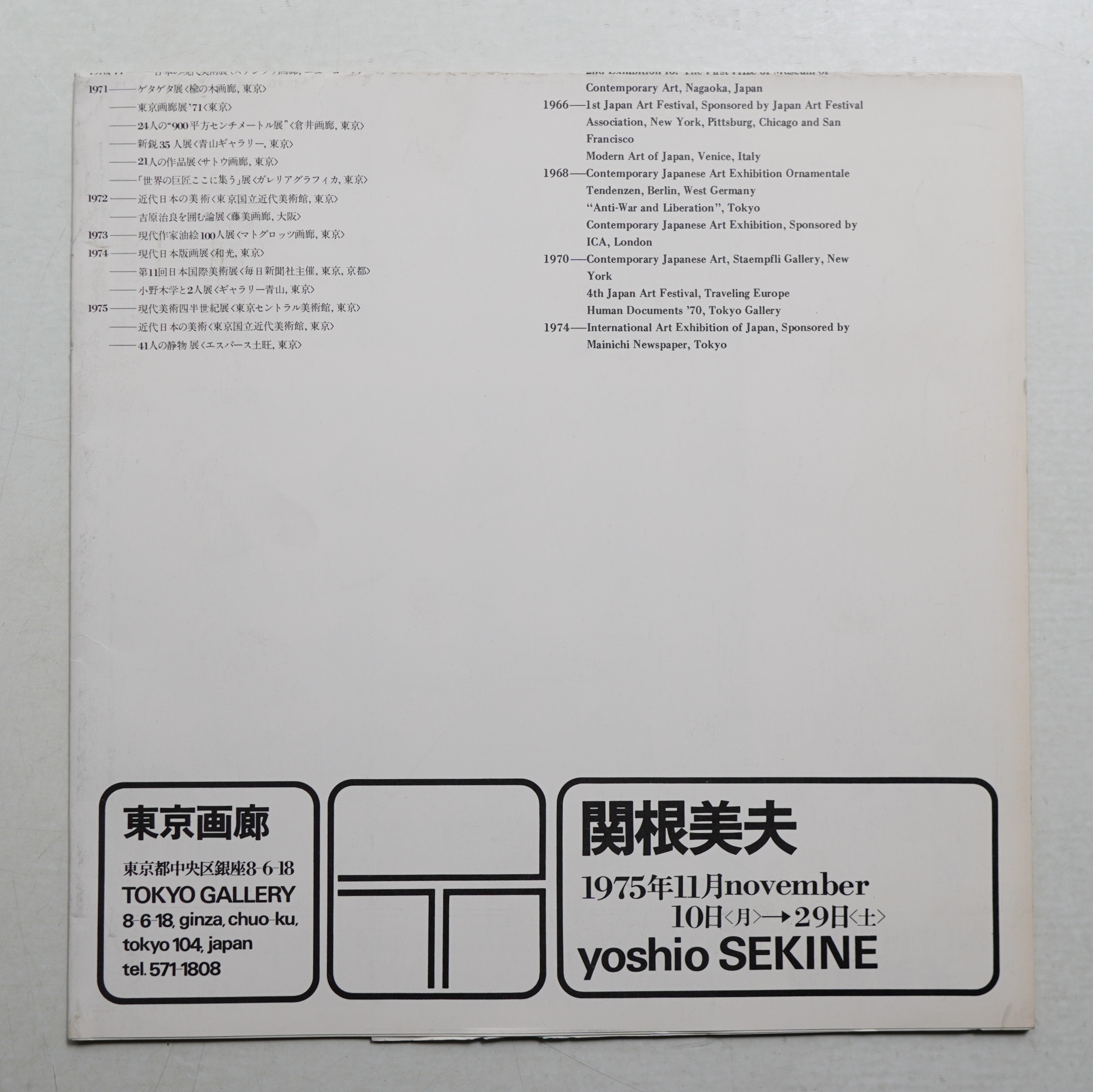 関根美夫 (1975年) <展覧会図録 (東京画廊)>