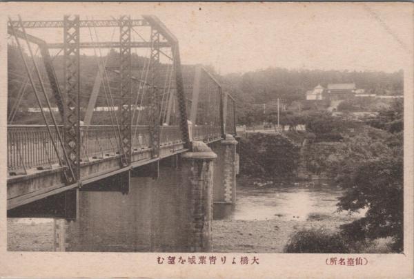 1000290■戦前 絵葉書■仙台名所 大橋より青葉城を望む