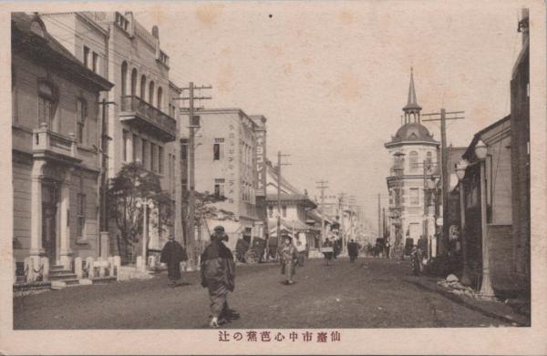 1000297■戦前 絵葉書■仙台市中心芭蕉の辻 ピン穴