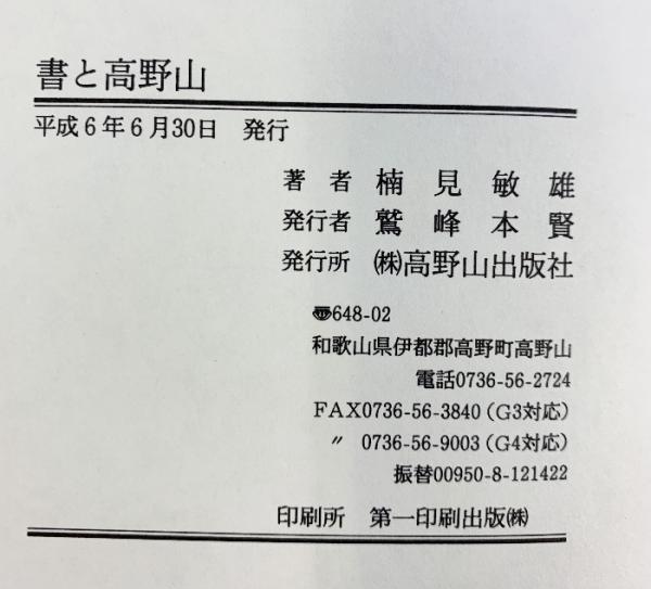 書と高野山 高野山出版社 楠見敏雄 平成6年