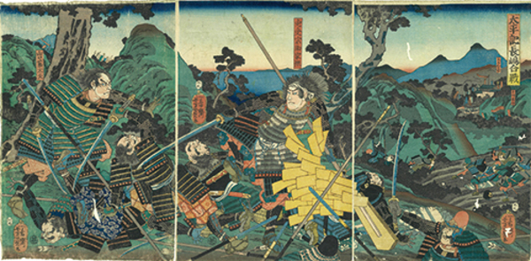 • 解説 丸屋甚八板 大判錦絵36.8×25.3 虫損 中折れ 虫損 3枚続