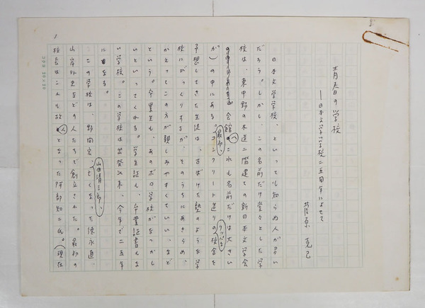 菅原克己草稿 『青春の学校 日本文学学校二五周年によせて』 ペン書四百字詰6枚完