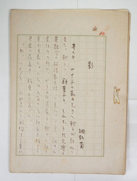 網野菊草稿 『影』 ペン書四百字詰13枚完 二つ折りで紙縒り綴