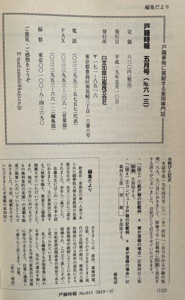 戸籍時報 2007年5月号 No.613