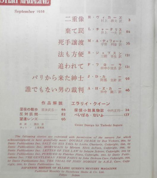 探偵小説月刊誌/エラリイ・クイーンズ・ミステリ・マガジン ロイ・ヴィカーズ M・A・ディフォード レスリイ・チャータリス ジョン・ディクスン・カー セルウィン・ジェプスン フレッチャー・フローラ A・H・Z・カー 作品解説/エラリイ・クイーン 深夜の散歩/福永武彦 探偵小説風物誌/中内正利 反対訊問 ぺいぱあ・ないふ 望遠レンズ